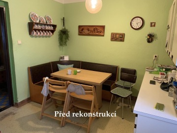 Máme za sebou rekonstrukci RD ve Skrýšově. Požadavek klientů byl – Nové podlahy, dveře, nová koupelna s toaletou. Nová kuchyně s jídelnou zvětšená o prostor vedlejší chodby. Klientka chtěla ponechat klenuté otvory a křivky, které zanechají v interiéru ráz statku. Dřevěné trámy uprostřed kuchyně plní nejen funkci podpěry stropu, ale také dotváří celý interiér staročeské chalupy. Celé rodině přejeme šťastné bydlení