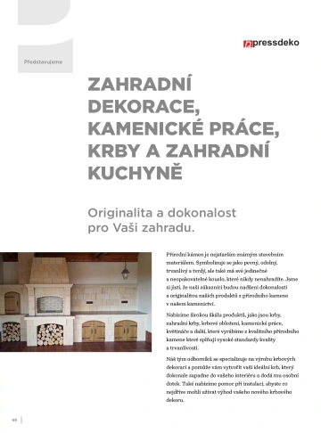 Zahradní dekorace, kamenické práce, krby a zahradní kuchyně.