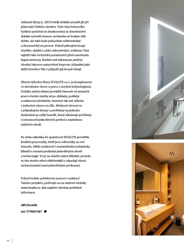 Koupelna je jedna z nejdůležitějších místností v domě. Zdokonalte svojí koupelnu moderními a šikovnými řešeními, která Vám zvýší komfort. Koupelnu Vám zaměříme, nakreslíme a zrealizujeme. Sázíme na detail a design spojený s funkčností.