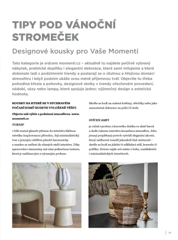V e-shopu momenti.cz najdete pečlivě vybrané designové kousky světových značek jako Zuiver, Micadoni, Nardi nebo Kave Home. Milovníci interiérového designu si navíc mohou v pražském showroomu prohlédnout exkluzivní kolekce a využít služeb bytových designérů.