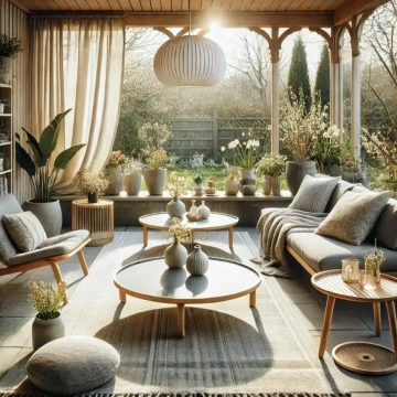 Zimní zahrady a terasy právě teď volají po nové energii – koberec, stoleček, světlo a pár zelených detailů.