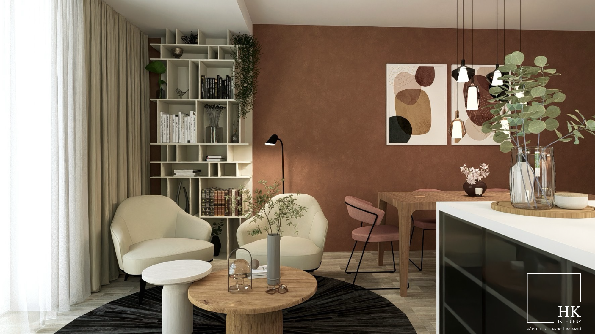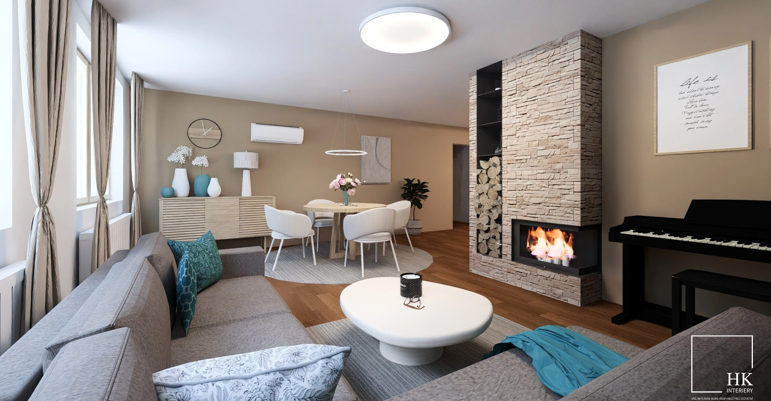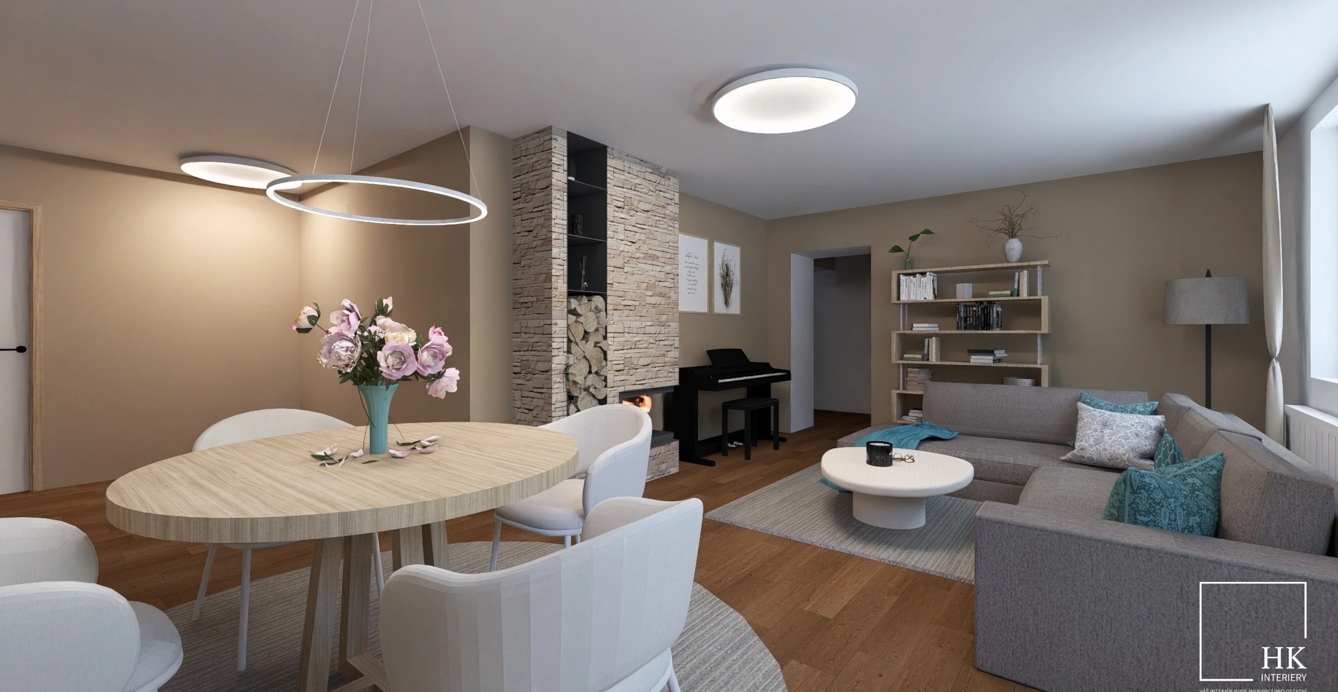 Jednotný design interiéru, který propojuje všechny místnosti v harmonickém celku.