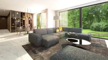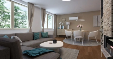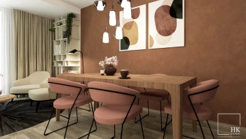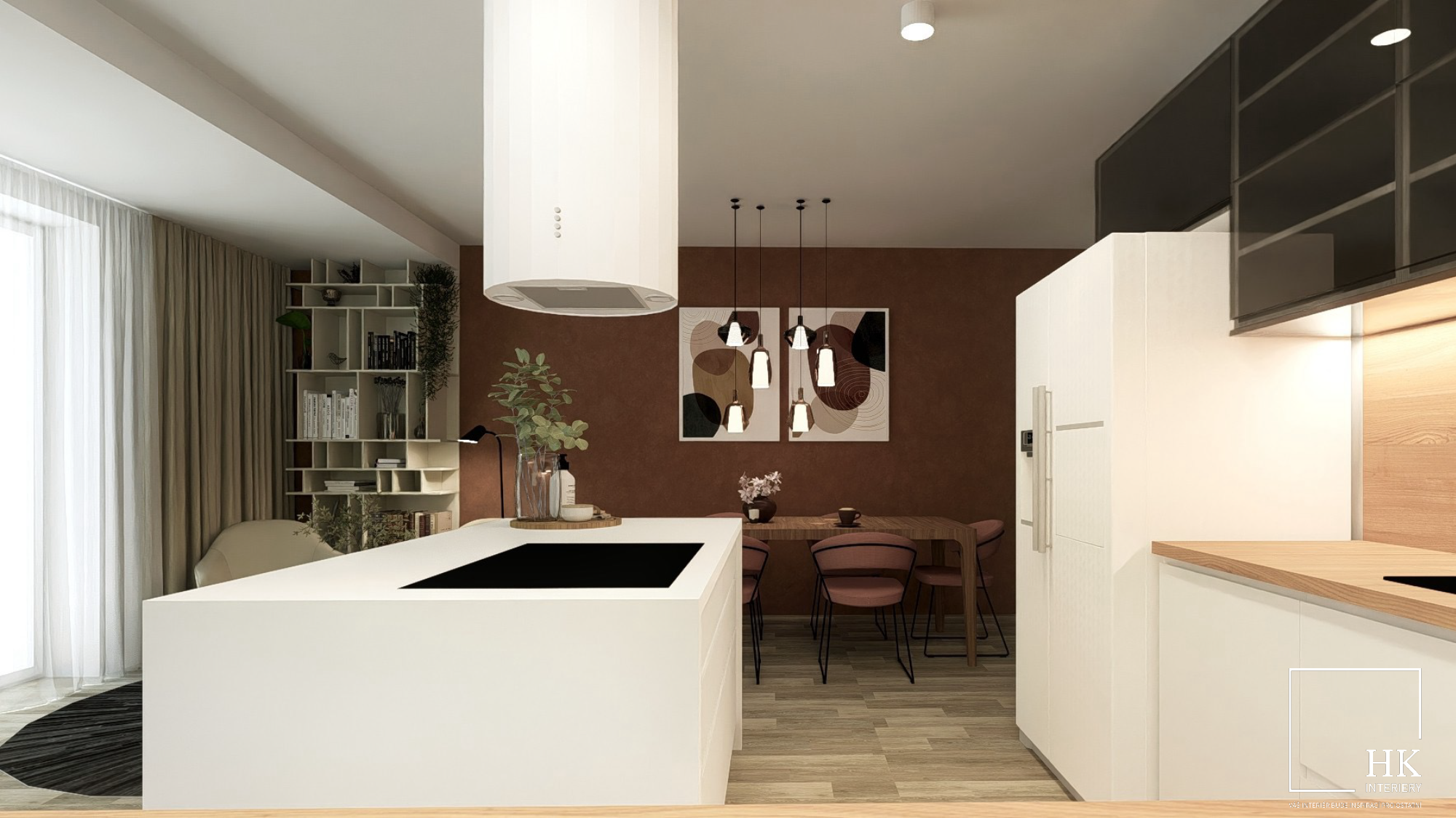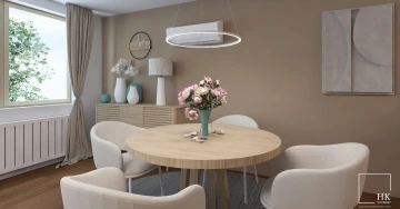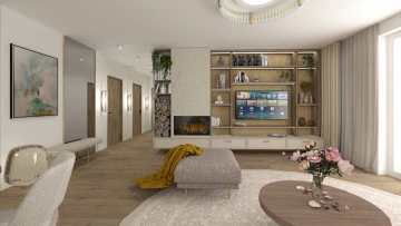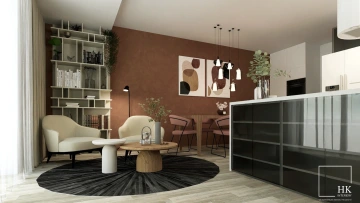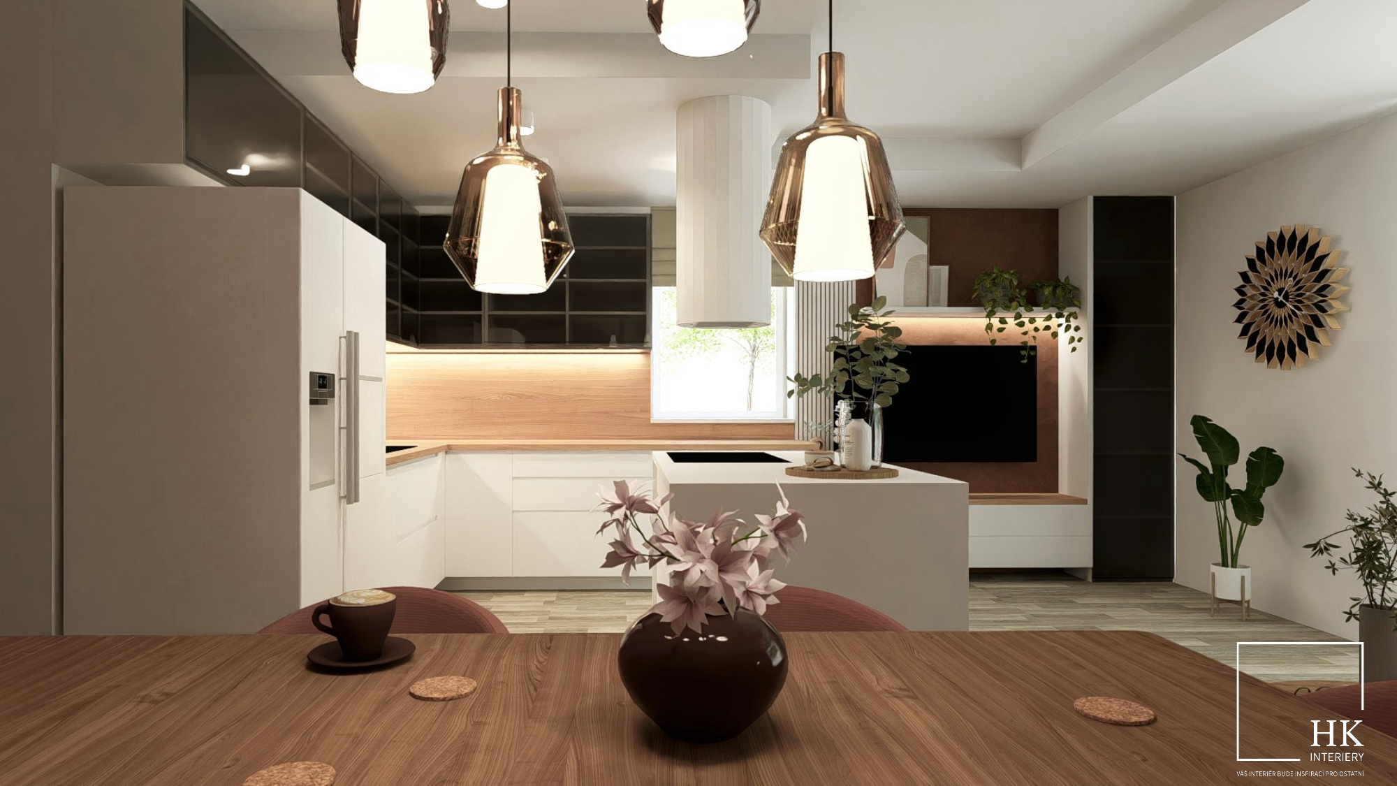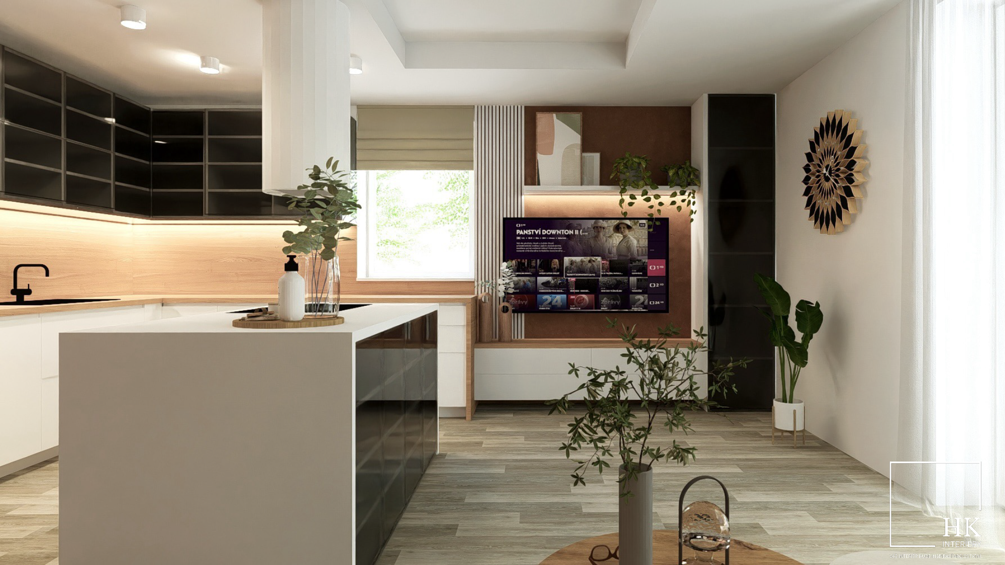 Jednotný design interiéru, který propojuje všechny místnosti v harmonickém celku.