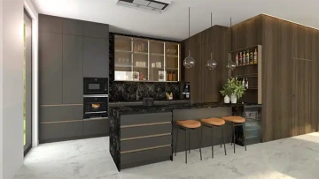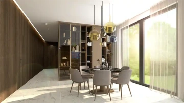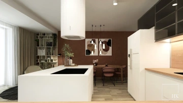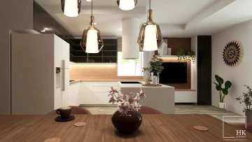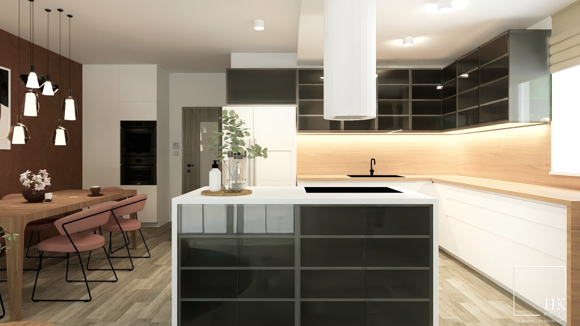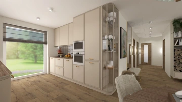 Propojení s kuchyní: Jednotný design spojuje celý interiér do harmonického celku.