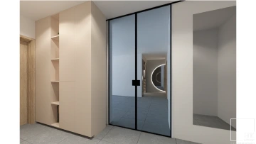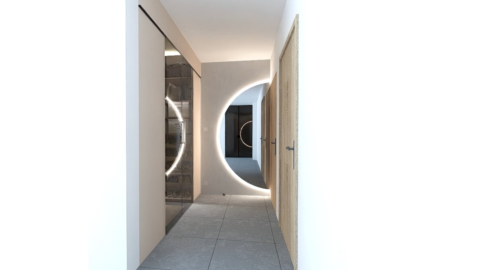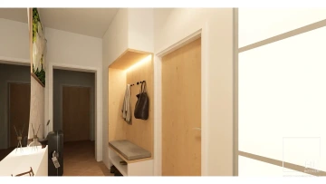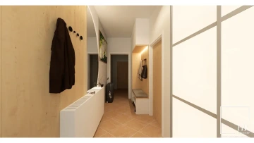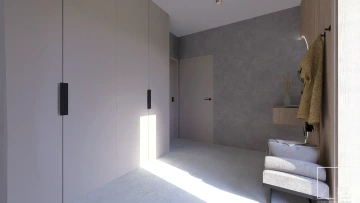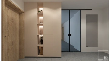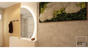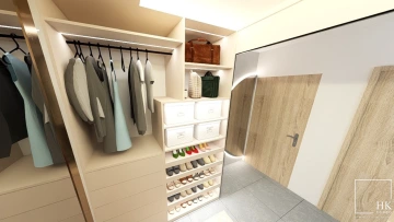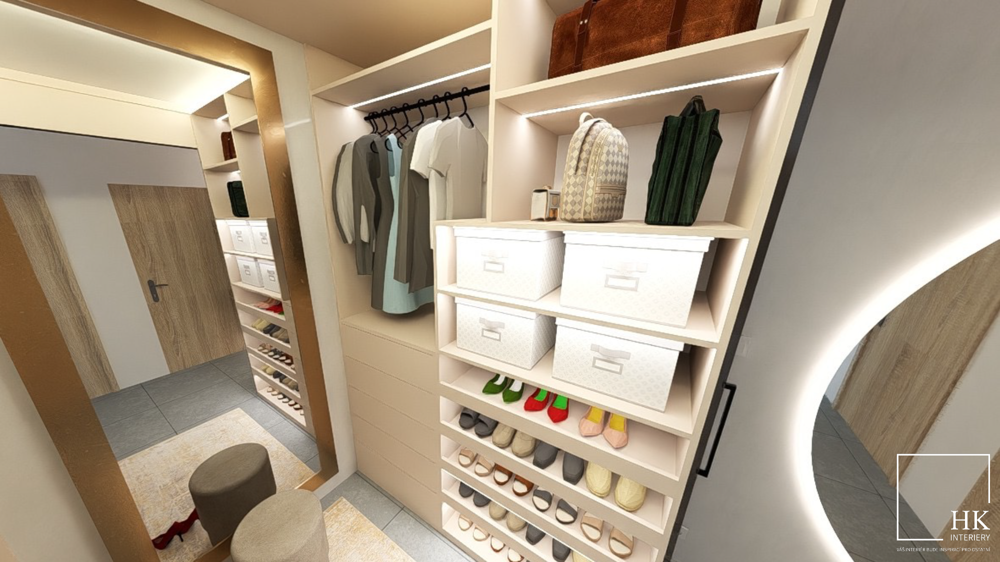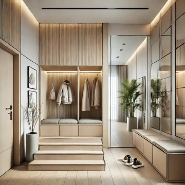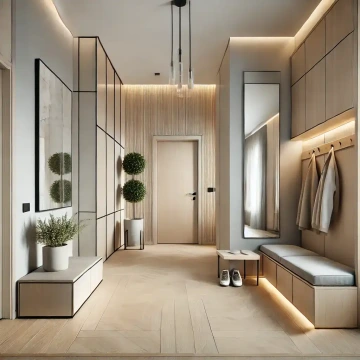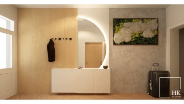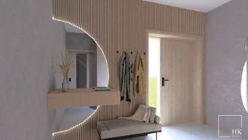 Jak chytře využít vstupní halu? Elegantní a praktický design je klíčem! Vestavěné úložné prostory, minimalistické vybavení a světlé tóny tvoří nejen krásný, ale i funkční prostor. Velká zrcadla opticky zvětší halu a dekorativní prvky dodají osobitost. Vstupní hala může být víc než jen místo, kde si odložíte kabát – vytvořte z ní přívětivou vizitku svého domova." Interiéry HK Příbram