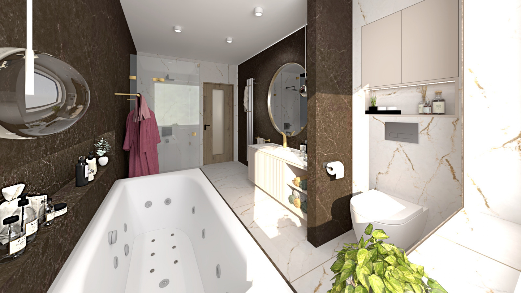 Představujeme vizualizaci wellness prostoru, který jsme navrhli pro dokonalý relax přímo v pohodlí domova.
